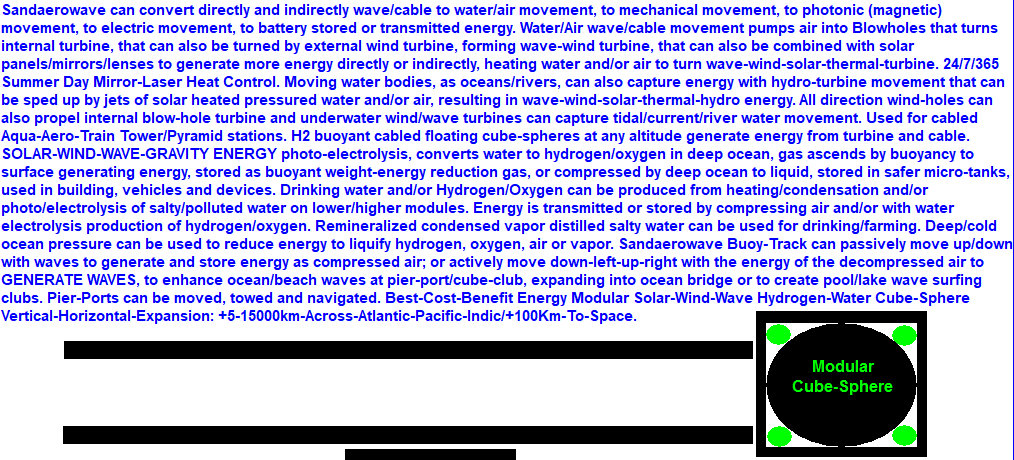 Gcity, Tower, Pyramid, Aerobridge, Aerotrain on land/water control wind/wave excess movement by cube-sphere pass-trough shape, aqua-aeroblock anchoring, propeller and photo-electric heating/ionization counter movements.