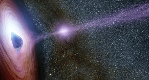 A Black-Hole (energy-matter entry) and White Hole/Quasar (energy-matter exit) are an unidirectional collapse/escape entry/exit of energy-matter on the cosmic scale, as a speculative Atomic Dark Hole (entry) and Bright Hole (exit) would be at an atomic scale. Gravitons collapse to the center, erode the nucleus and escape in one direction, as opposed to an atomic scale multidirectional fission explosion (collision proton/neutron break-up) or fusion implosion (from photon/electron/neutron/proton merger). Or on a cosmic scale a Black Hole erosion, Supernova explosion and Neutron Star implosion. It is unproven/undetected if these holes occur naturally on an atomic scale but can potentially be created by humans or other technologically advanced species as with nuclear fusion/fission or the so called "quantum entanglement", when separated photons would sustain graviton orbits of a spiral and/or forward trajectory, keeping the photons or any other quantum entangled, or under mutual influence. They are the atomic/cosmic fifth dimension (fourth being time). One application of this theory is that the fifth dimension (worm/gravitonic/dark holes) could allow above light speed transportation/communication/energy transmission. Higher gravitonic speed is a logic consequence of the smaller Graviton particle with higher speed potential than a Photon. A natural or artificial Black/White Hole is an entry/exit of a Worm hole to/from the same or different Star, Galaxy or even Universe Systems at gravitonic speed which is potentially higher than photonic speed because the quantum is smaller. Hypervelocity Stars and Planets (with no orbit, with velocity faster than system orbit loss phenomena) could be the result of entering a Black-Hole and exiting a White-Hole through the worm-hole, potentially proving that it is possible to travel to different Solar, Galaxy and even different Universe systems at gravitonic faster than light (photonic) speeds during and/or after the worm hole passage.