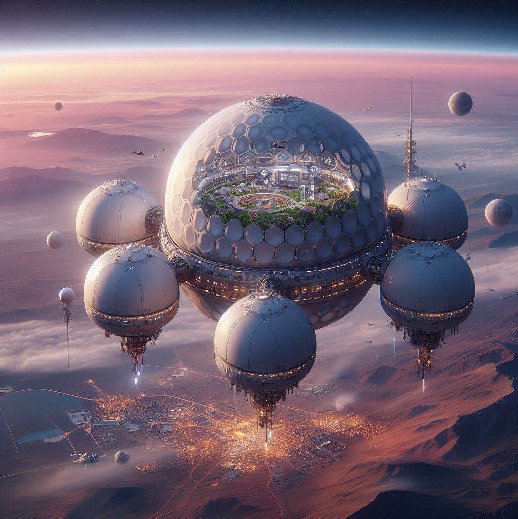 Sandaerocity, Aero-City, Acity, is a modular cube-sphere composite buoyant atmospheric aero city, solar-wind energy, photo-electrolysis of water vapor storing buoyant energy as hydrogen/oxygen, fuel cell reconverted to water plus energy, high/low atmosphere temperature/composition control/circulation, can reduce Earth/Venus temperature, laser convert hot CO2 into C (Carbon Graphene used for buoyancy envelopes) and refrigerated O2. Acity is the aero component of Global Green Gcities, in addition to Ocities (Oceanic), Tcities (terrestrial), Ucities (Underground-water) and Scities (Space Cities). Sandaerospace/Sandaerotower can be combined or expanded with addition of Sandaeroblocks/Sandaeronets modules into a Sandaerocity that can also be combined with a Sandaerovator, a aerospace pyramid-tower elevator-accelerator. Sandaerostation connects Sandaerotrain wired/wireless lines.